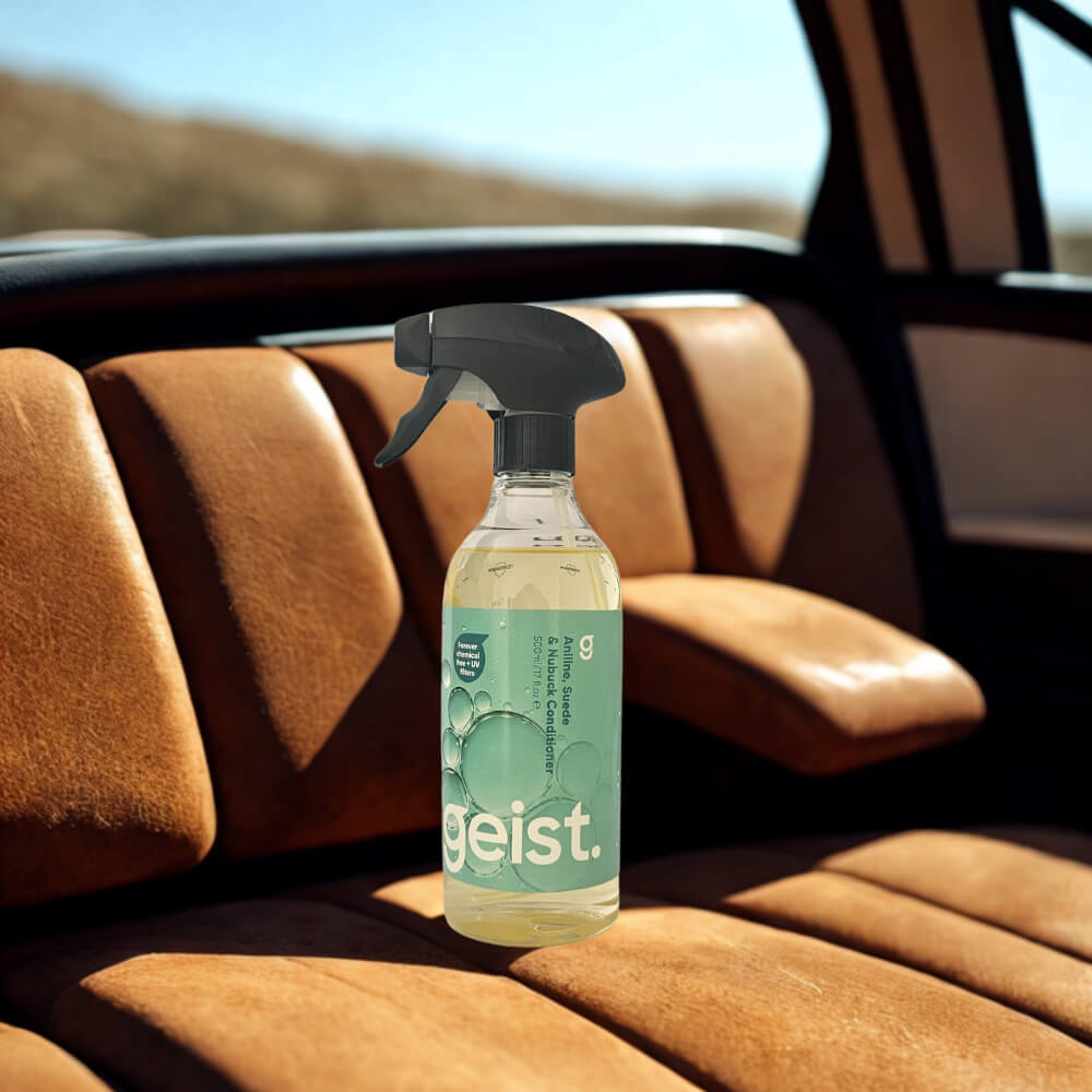 Po równomiernym wchłonięciu odżywki (min. 72 godzin) – zabezpiecz nubuk/zamsz przed plamami z wody i brudem, stosując Geist Fabric & Upholstery Protector.