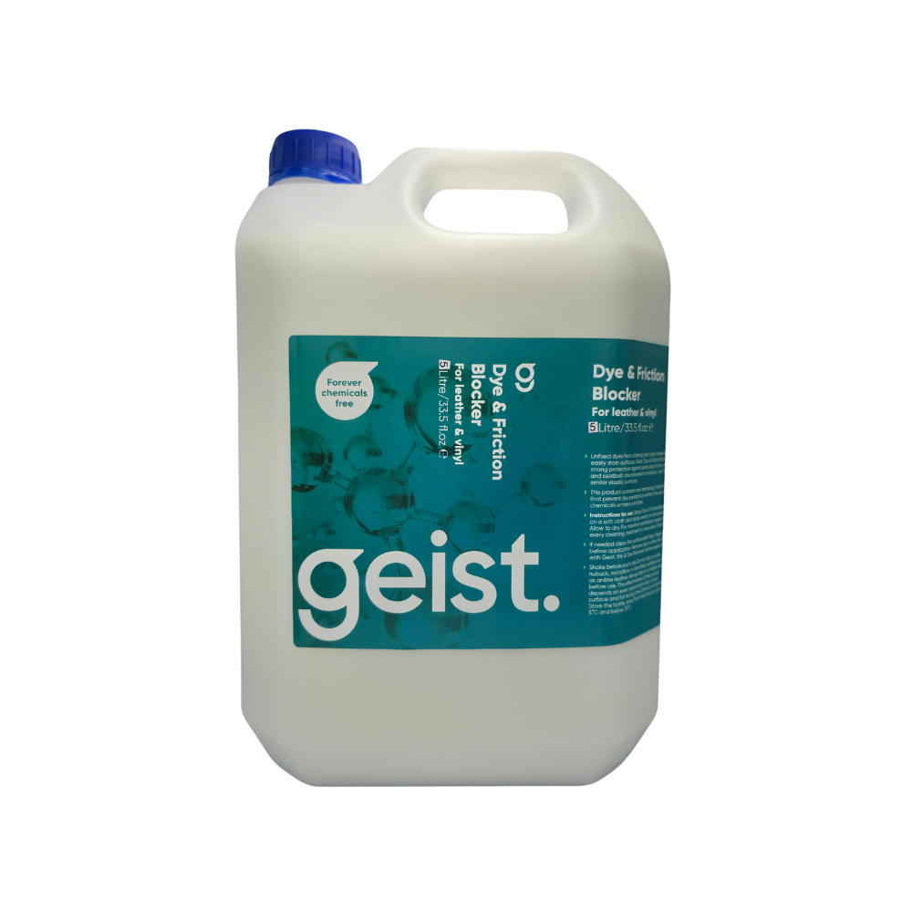 Tapicerka skórzana – niezależnie od koloru – codziennie narażona jest na kontakt z odzieżą, pasami, zamkami błyskawicznymi i innymi czynnikami, które mogą powodować przebarwienia lub przetarcia. Geist. Dye & Friction Blocker to skuteczna i nowoczesna ochrona przed takimi zagrożeniami. Zabezpiecza powierzchnię, nie zmieniając przy tym jej wyglądu ani właściwości.